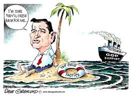 Senator Ted Cruz has been one of the darlings of the Tea Party ever since he got elected. But as happens from time to time in life, reality catches up to us all and Ted Cruz is no different. His vitriolic approach to governance electrifies the GOP base and rabid conservative talk show hosts, but does little for anyone else. It makes it especially hard to get anything accomplished, legislation-wise, since you can't pass bills all by yourself. Holding your breath until you turn blue over Obamacare does not make one a leader of the people.